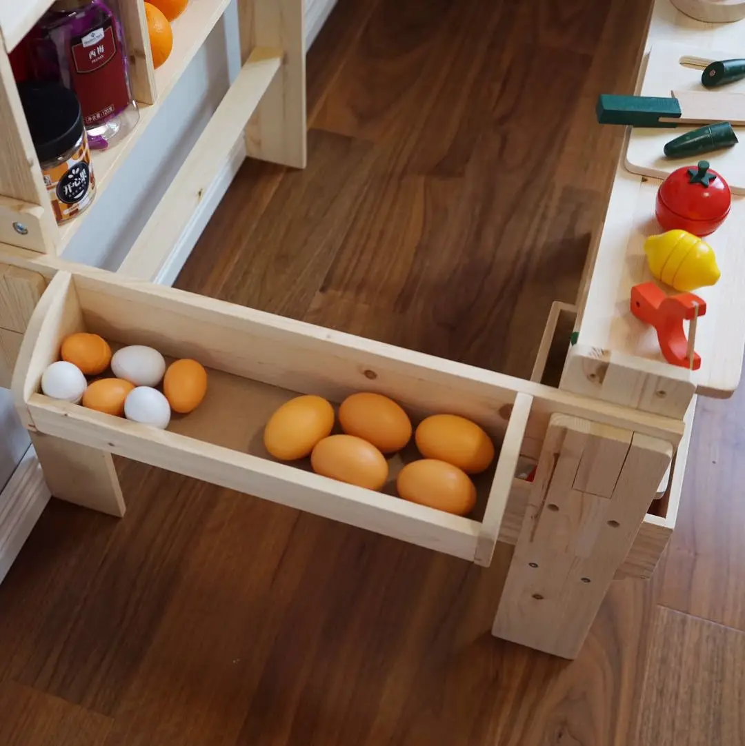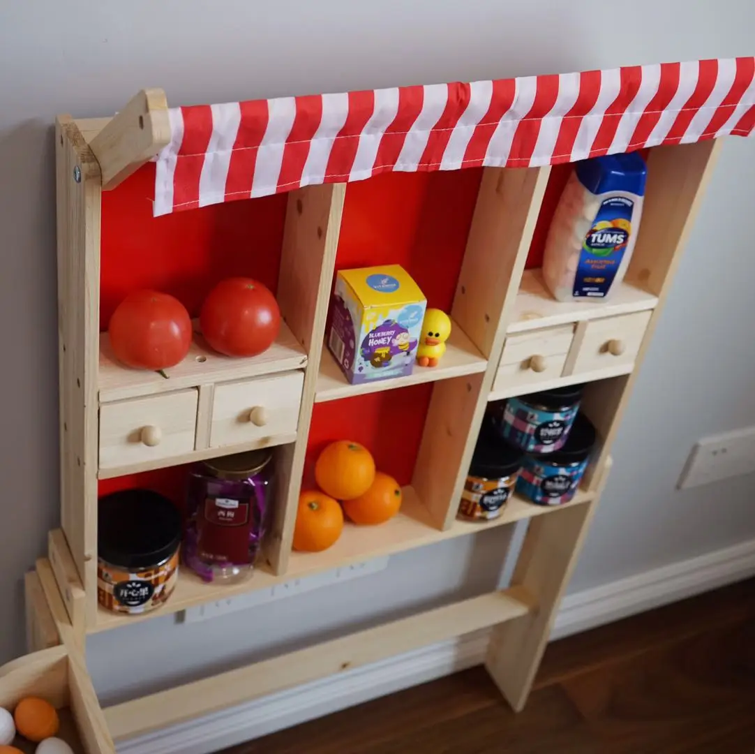 Hot Wooden Children Role Play Toy Simulation Shop Wooden Fruits Vegetables Supermarket Grocery Shopkeeper Cart Stand Kitchen Toy