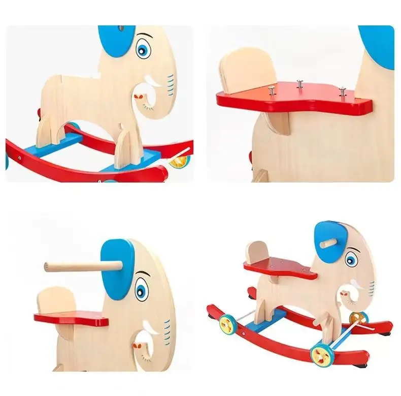 New Style Custom Funny Solid Children Playing Learning Toys Early Educational Wooden Elephant Rocking Horse Car for Children