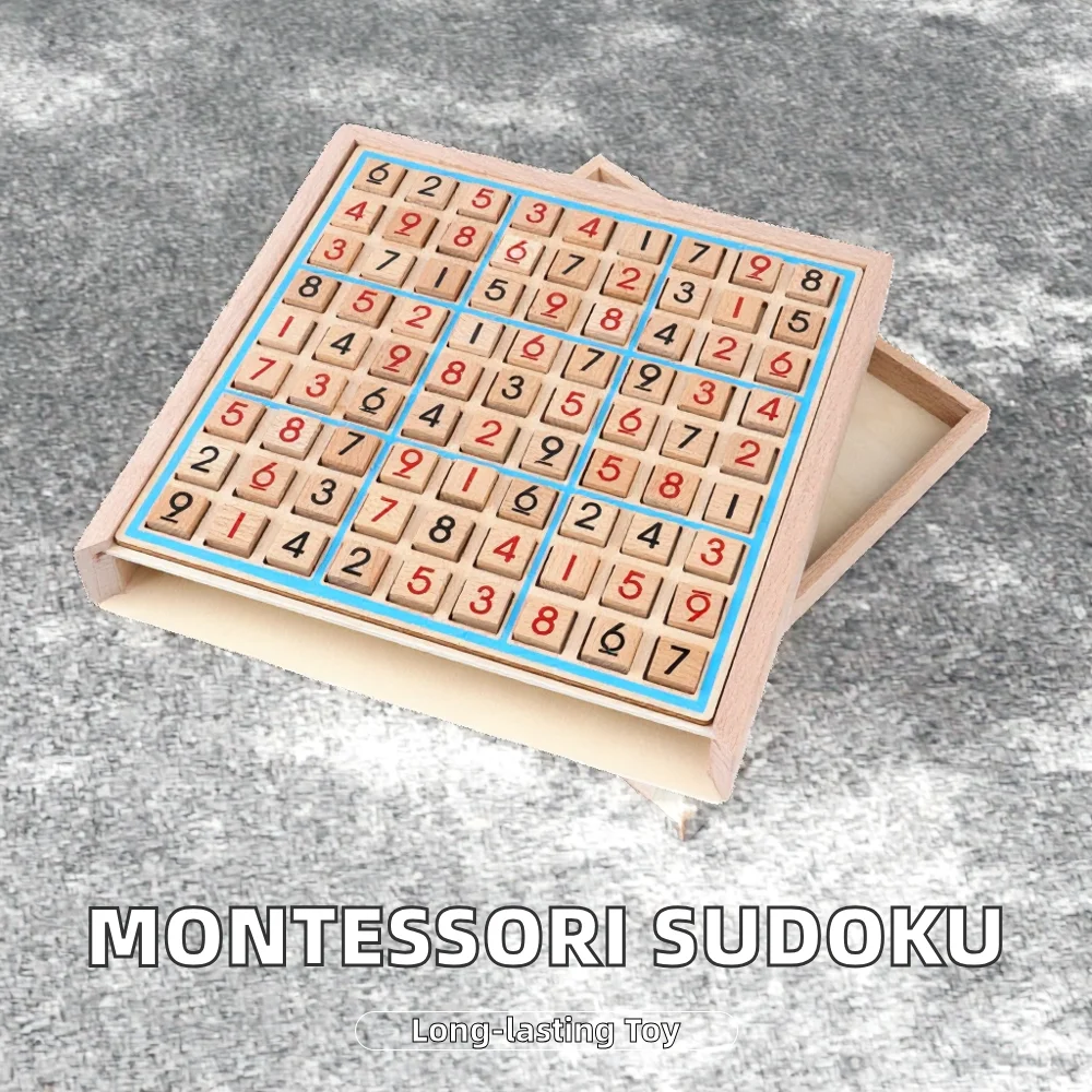 Wooden Sudoku Chessboard: Montessori Math Logic Puzzle Game with Nine Palace Grid for Kids & Adults Educational Toy