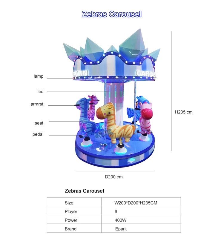 Coin Operated Zebras Carousel Kiddie Rides Portable Carousel Small Fairground Merry Go Round Kids 6 Seats Carousel for Children