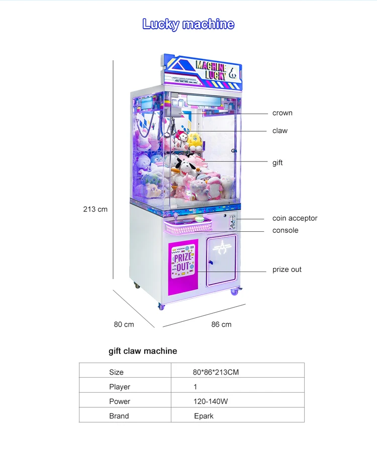 Doll Catch Game Crane Claw Machine Arcade Coin Operated Claw Machine With Bill Acceptor Machine for Sale