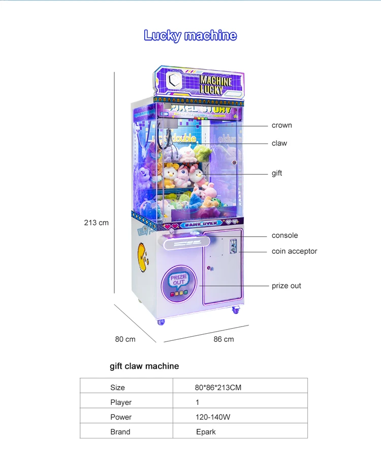 Factory Direct Coin-Operated Plush Toy Crane Arcade Machine 220V Big Claw Crane with Bill Acceptor for Amusement & Gifts