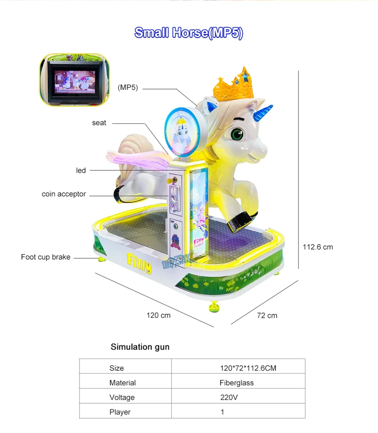Coin-Operated Music Kiddy Ride Swing Machine Small Fiberglass Horse for Kids for Game Centers 220v
