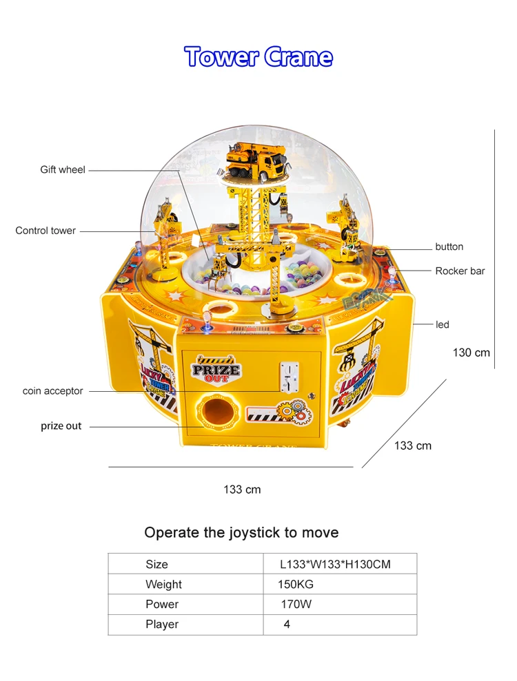 4-Player Coin-Operated Amusement Claw Game Machine Digging Candy Toy with Push Tower Crane for Play Equipment and Gift