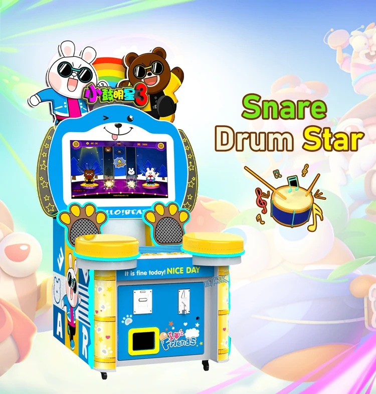Kids Coin Operated Game Machine Star Drums & Lottery Arcade with LED Screen Electrical Claw Crane Machine Made of Plastic Sale