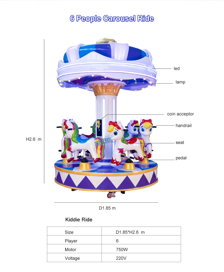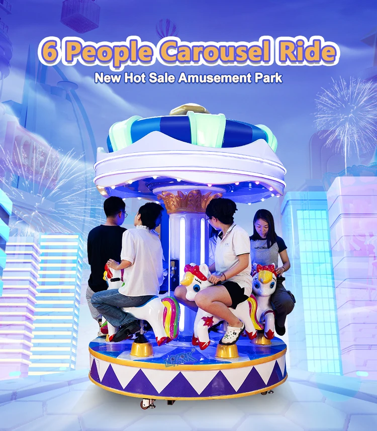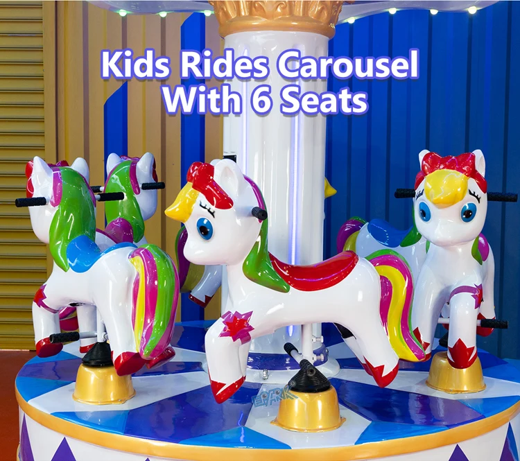 Children's Coin-Operated Swing Machine 6-Player Carousel Horses Play Center 220V Carousel Game For Sale