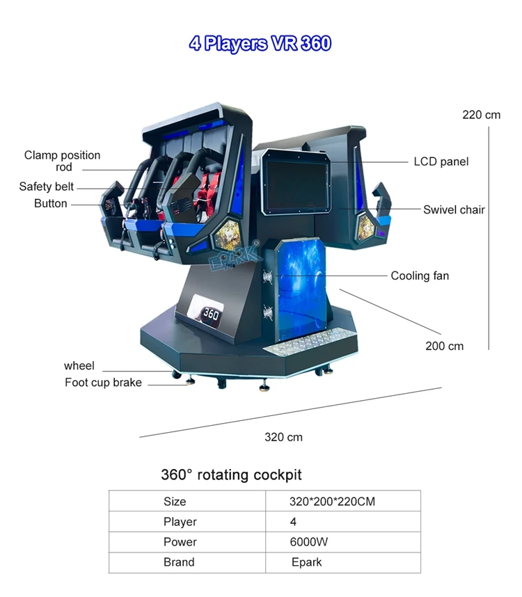 360 VR Rotation 4-Seat Gaming Set 9D VR Chair Roller Coaster Indoor Adventure Parks Metal Plastic for Trampoline Park