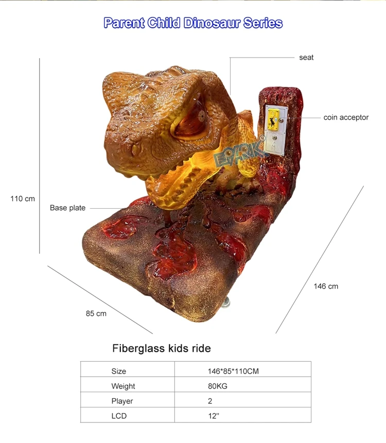High Ultra Strong Transparency Quality Dino Kiddie Rides Amusement Park Moving Dinosaur Ride 1-Year Warranty Coin Operated 220v