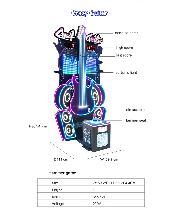 New Arrival Sport Game Machine-Crazy Guitar Hammer Hitting 220v 1 Year Warranty