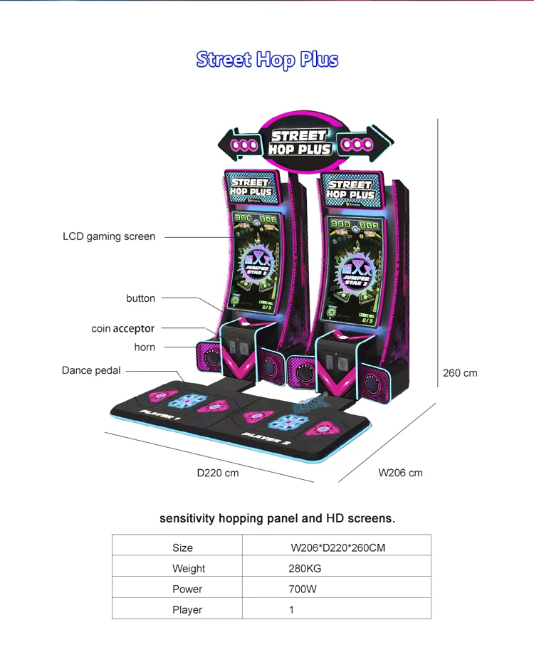 2 Players Street Hop Plus Dance Video Arcade Machine Music Simulator Games with 1 Year Warranty 220V