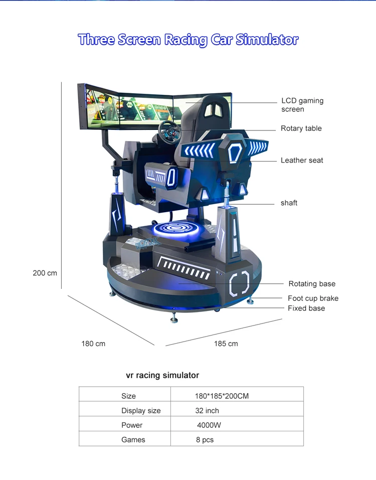 New Design 9D Virtual Reality Indoor Racing Simulator Crazy Three Screen VR Amusement Park Product Metal Featuring 3 Screen