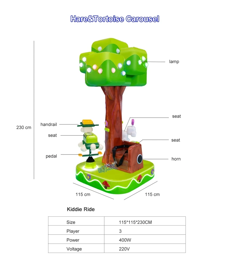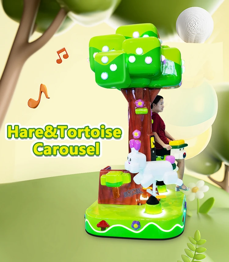 Mini Coin-Operated Hare and Tortoise Carousel Arcade Kiddie Ride Swing Game Machine for Kids Made of Metal