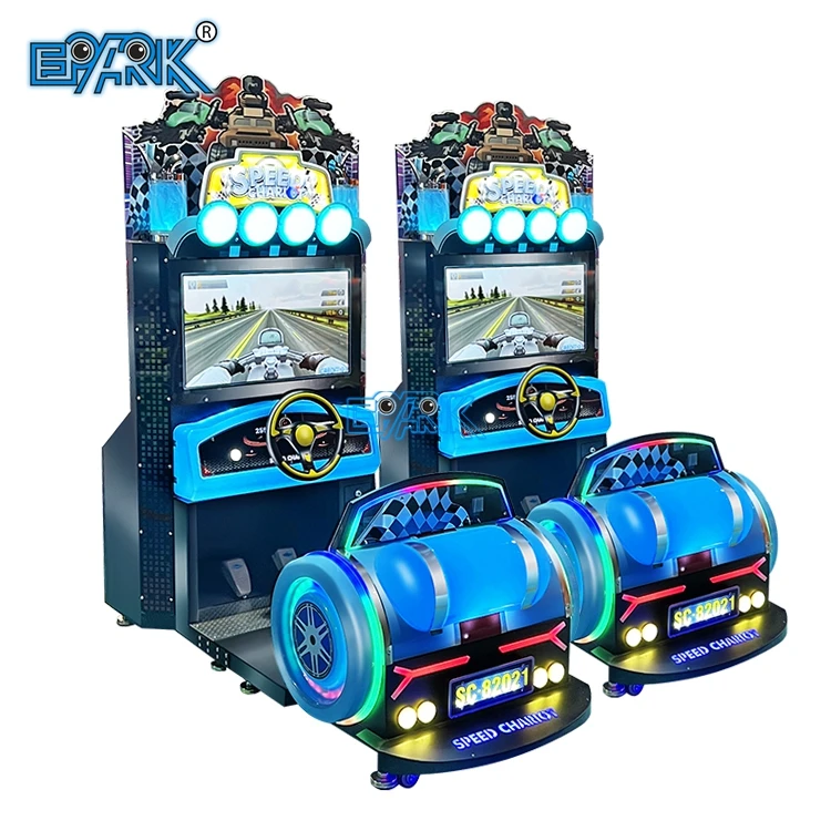 Coin-Operated Kids' Car Racing Arcade Game Simulator for Fun Pusher Experience