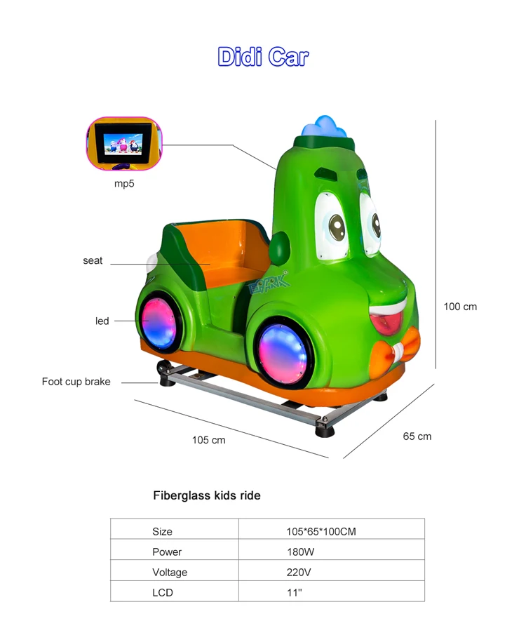 Indoor Didi Car Kiddie Rides Coin-Operated Arcade Video Games Fiberglass Kiddie Swing Machines for Amusement Park Children