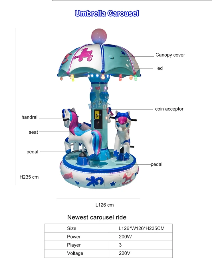 Indoor Entertainment Kid 3 Seats Kiddie Ride Airplane Carousel Mini Electric Merry Go Round Game Machine