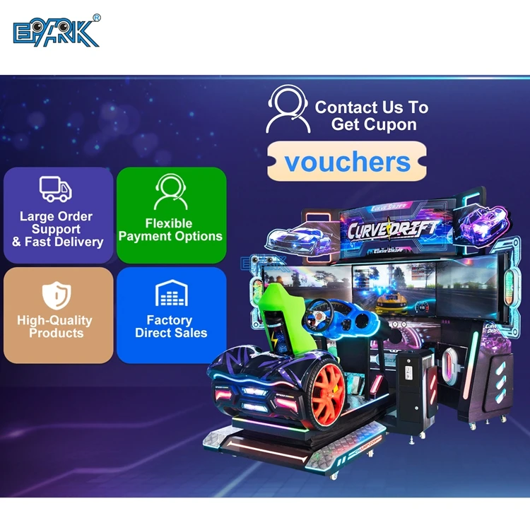 Curved Drift Three Screens Racing Video Arcade Car Simulator Coin Operated Board Plastic Arcade Machine