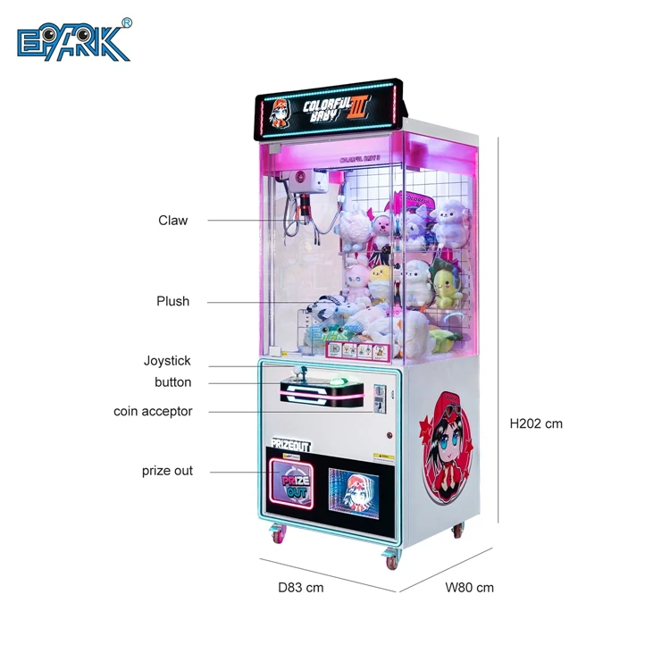 Super Mega Metal Claw Machine Coin-Operated Plush Toy Crane with Card Reader System English Language