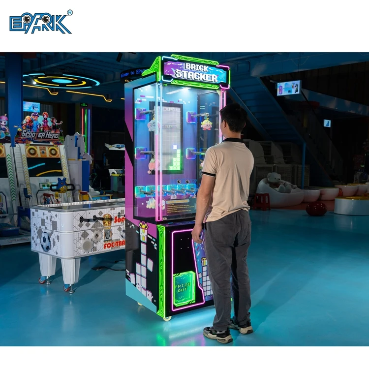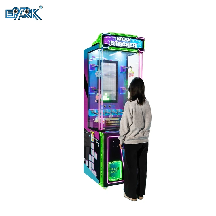 Redemption Metal Crane Arcade Skill Game Machine Kid-friendly Brick Stacker Monitor With Prize-winning Cube Redemptions