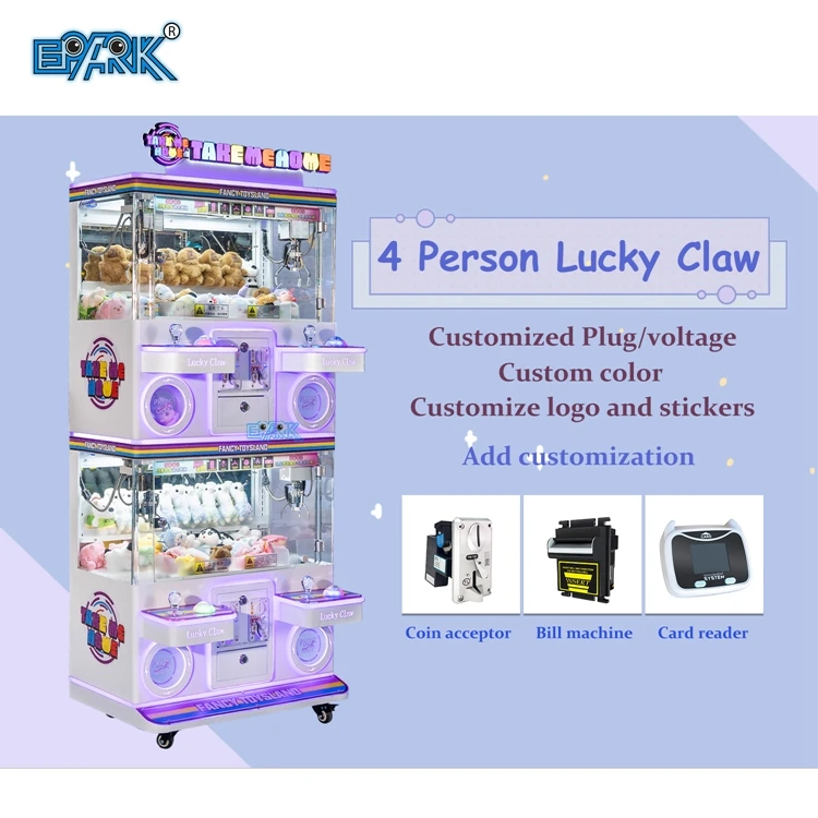 Customizable Logo Mini Claw Crane Machine 4 Player Clip Prize Doll Machine Arcade Claw Crane Game Machine Toy For Children