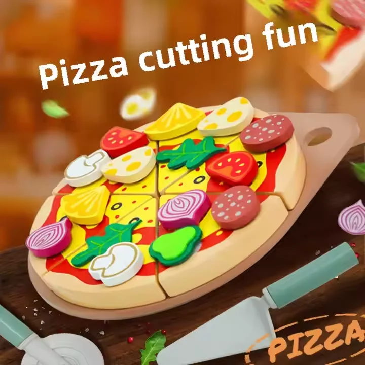 Unisex Wooden Simulation Fruits Vegetables Pizza Funny Cutting Role Play Kitchen Educational Learning Toys for Kids Boys & Girls