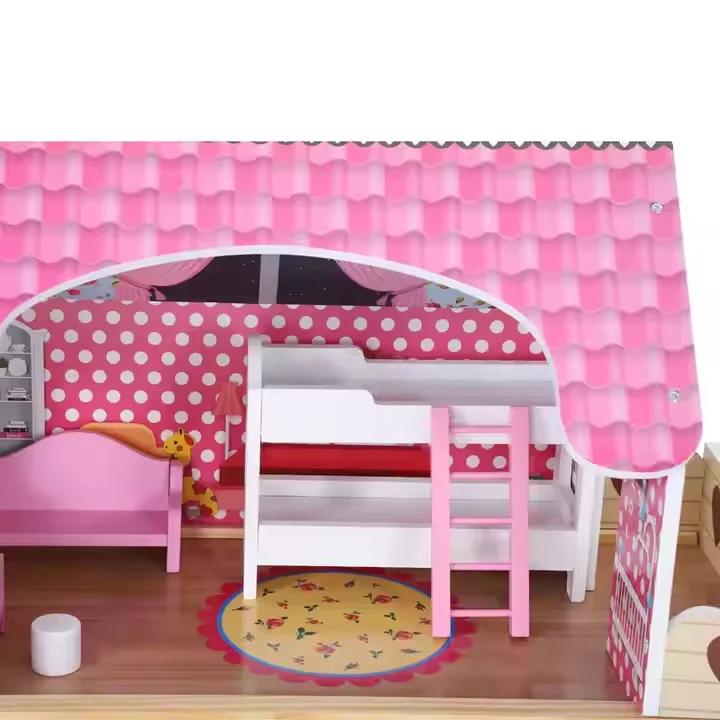 Hot Selling Classic 3 Floors Large Doll Houses Pretend Play Wood Furniture Toys Educational Learning Games for Kids Toddler
