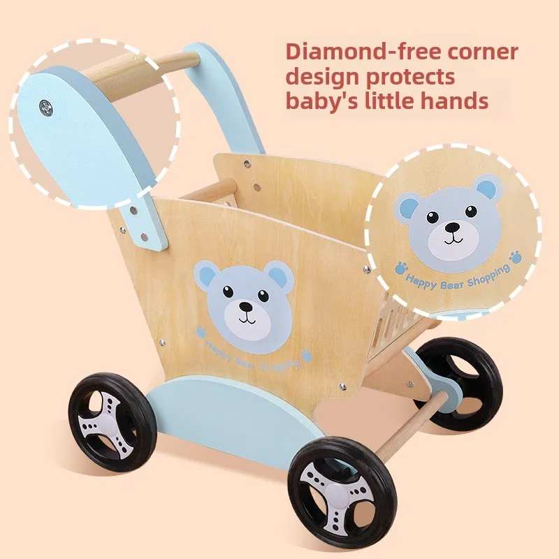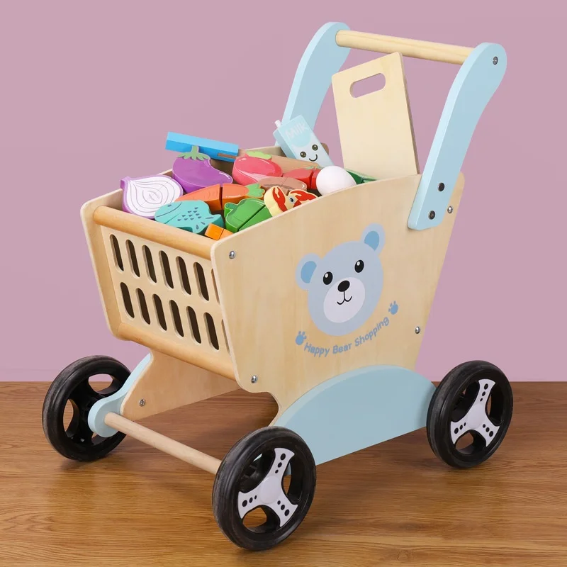 Multi-functional Bear Shipping Cart Walker Fruits Vegetables Cut Toy Educational Learning Games for Kids Toddler Boys & Girls