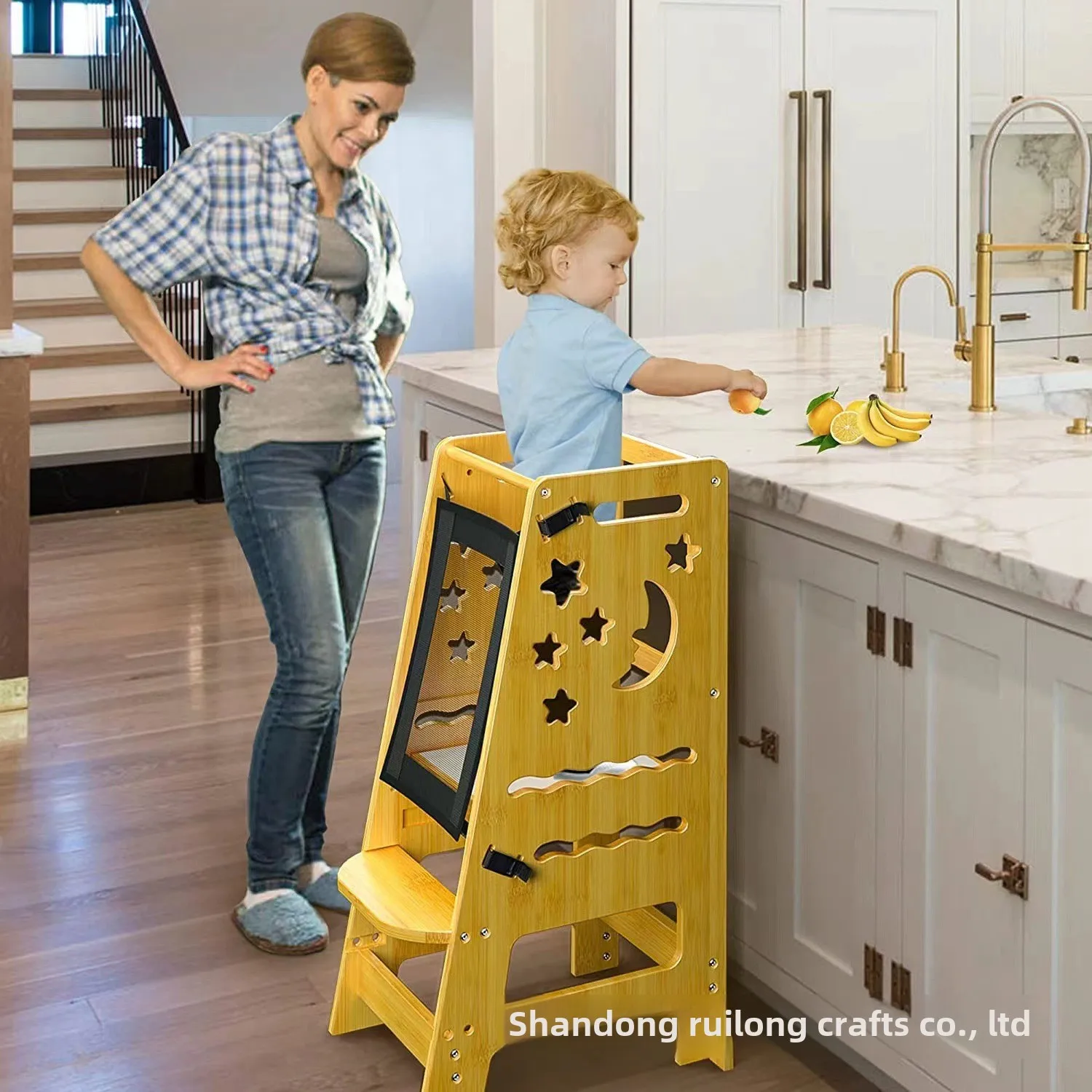 New Design Multi-functional Wooden Baby Hand-washing Ladder Wholesale Wooden Frame Baby Walkers for Kids Toddler Boys & Girls