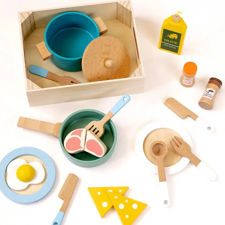 Montessori Best-selling Wooden Home Cooking Utensils Cooking Pot High Quality Pretend Play Toy Set for Kids Toddler Boys & Girls