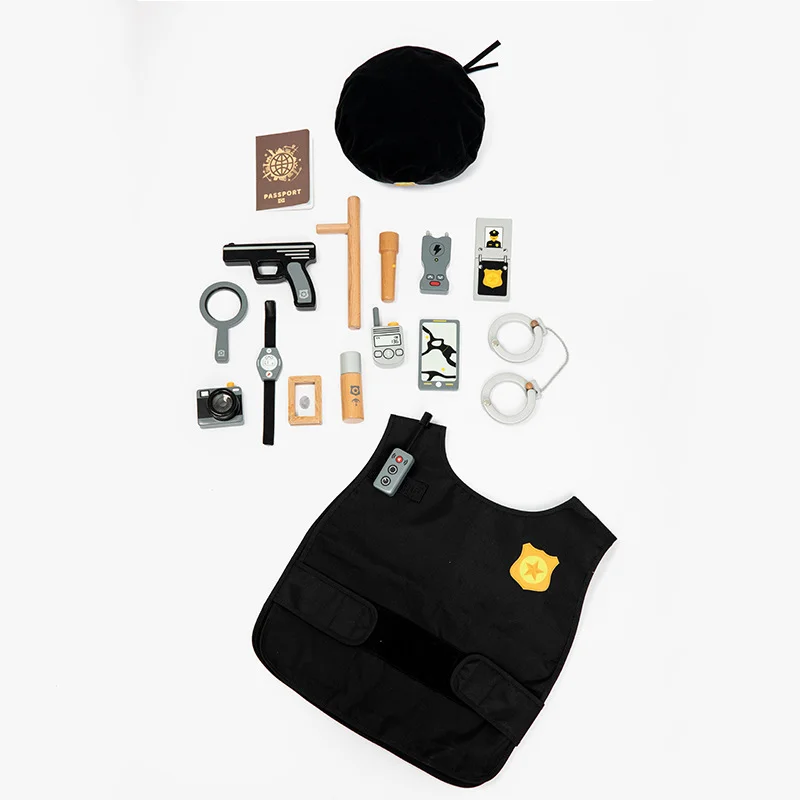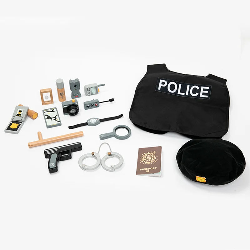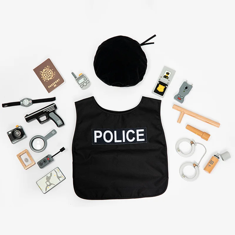 Multi-functional Pretend Playing Game Wooden Dress up Police Station Interactive Cognitive Educational Learning Toys for Kids