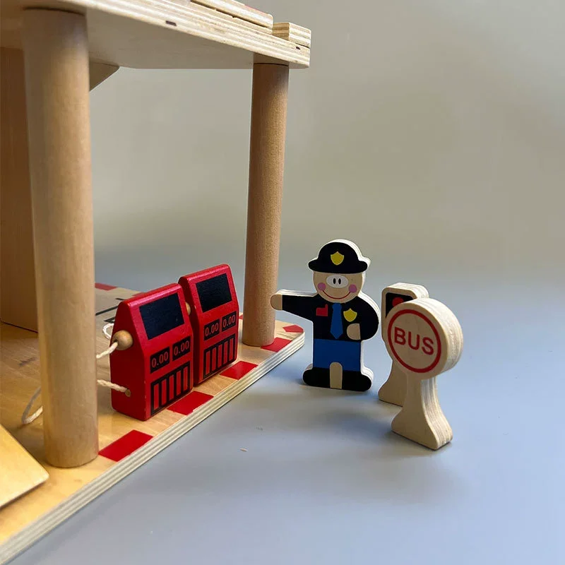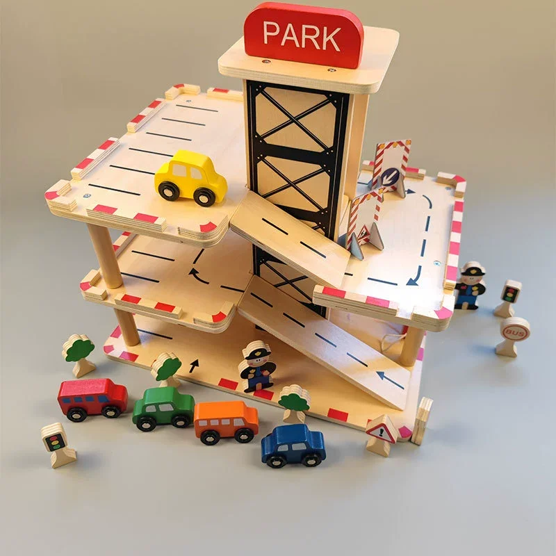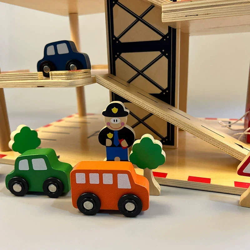 Best-selling Wooden Assemble Parking Lot Multi-storey Elevator Traffic Police Command Scene Simulation Toy for Kids Boys & Girls