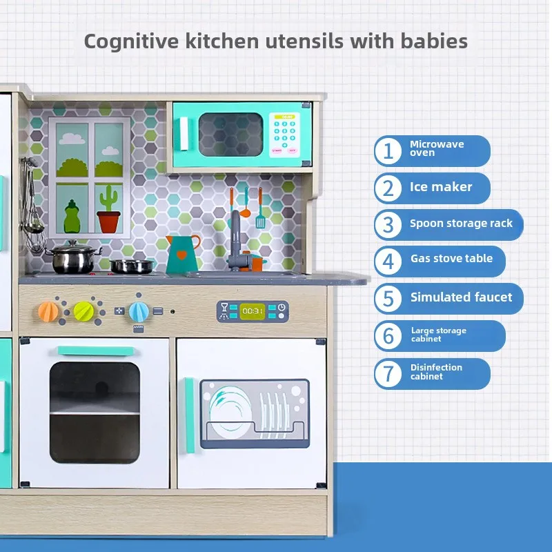 Multi-Functional Pretend Play Kitchen Food Simulation Small Appliance Includes Ice Maker Microwave Oven Educational Toy for Kid