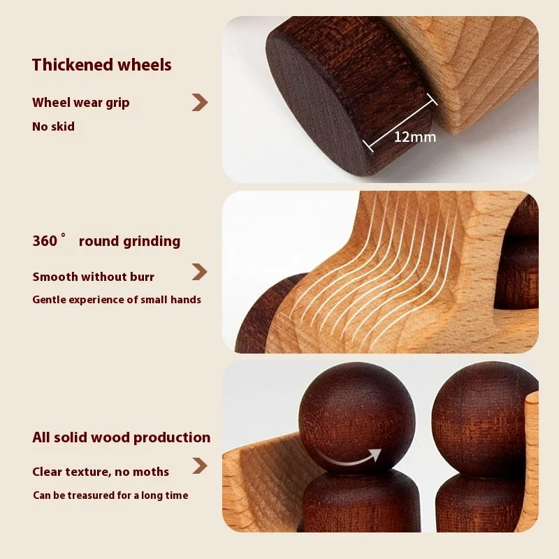 Unisex Wooden Push Car Little Man Tree Sense Inertia Handheld Climbing Educational Learning Toys for Kids Toddler Boys & Girls