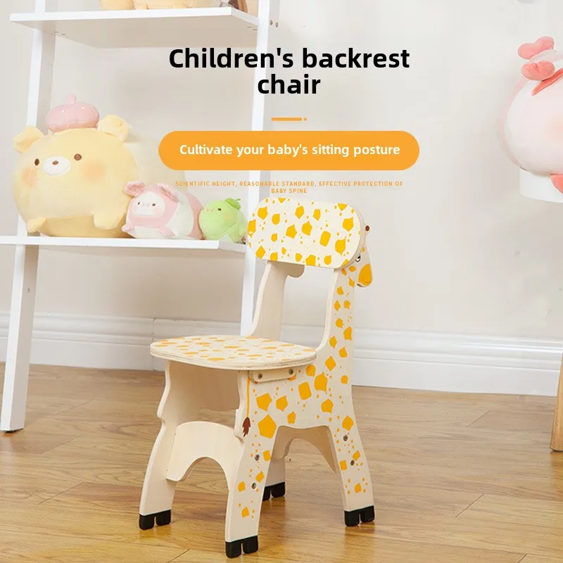 Multi-functional Cute Giraffe Wooden Backrest Chair Set New Furniture Educational Learning Toys for Kids Toddler Boys & Girls