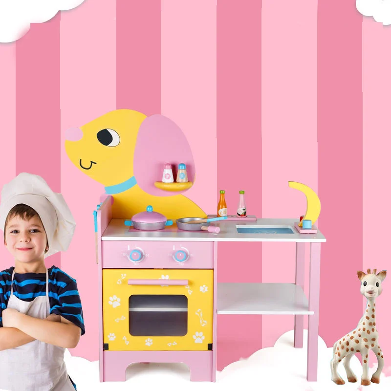 Best-selling Wooden Dog Kitchen Play House Toy Cookware Cooktop Combination Educational Learning Games for Kids Boys & Girls