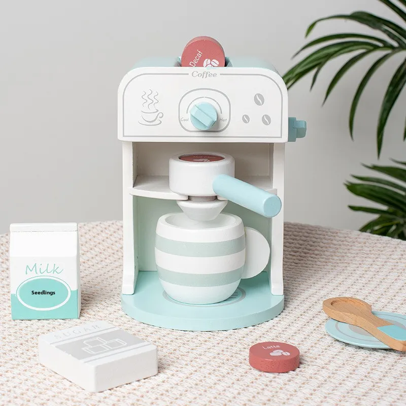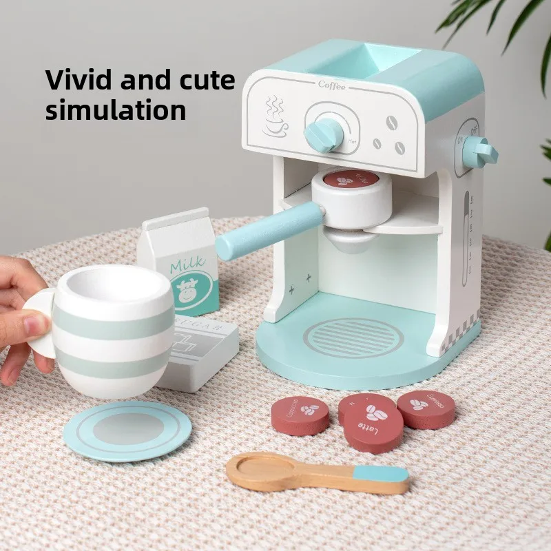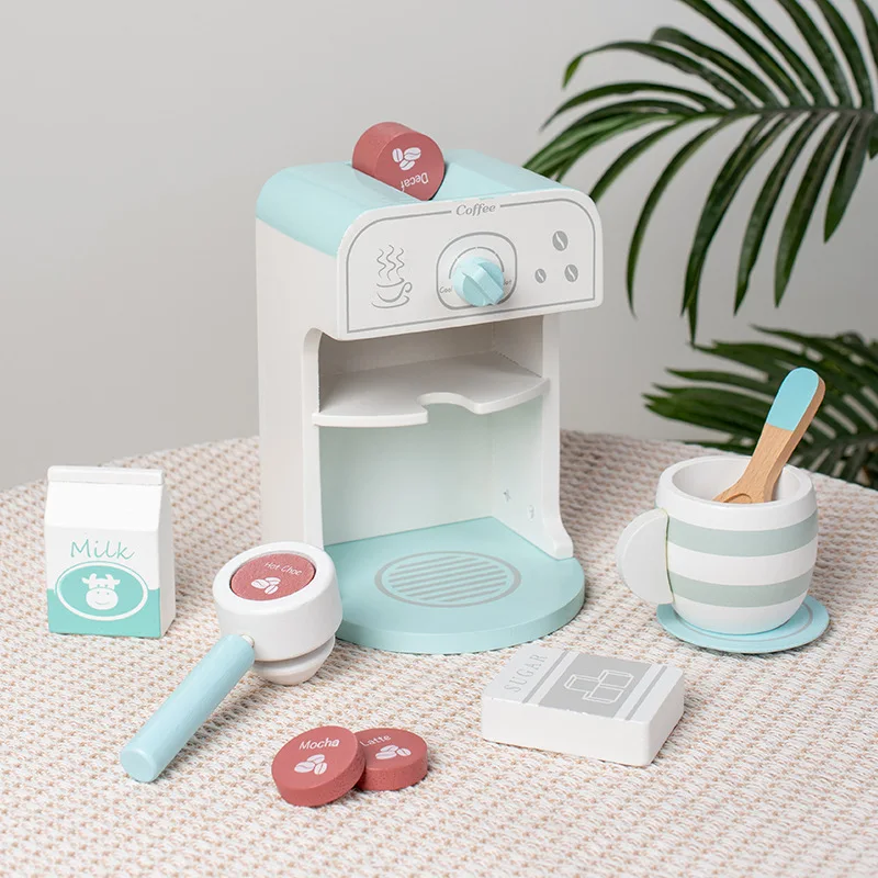 Montessori Wooden Simulation Coffee Machine Pretend Play Kitchen Cookware Educational Learning Toy for Kids Toddler Boys & Girls