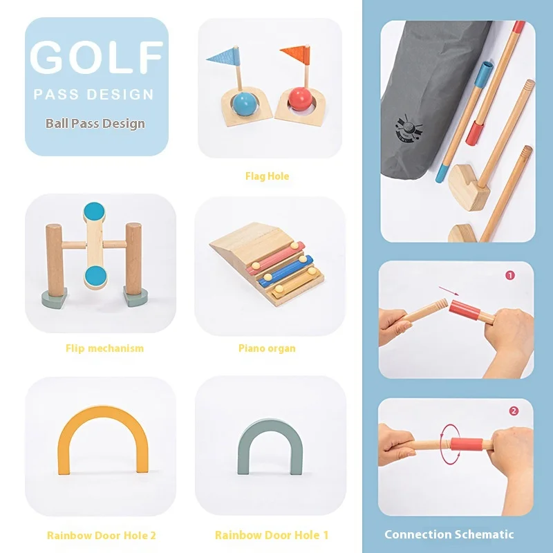 Multi-functional Indoor Outdoor Sports Wooden High-End Golf Parent-child Game Educational Toys for Kids Toddler Boys & Girls