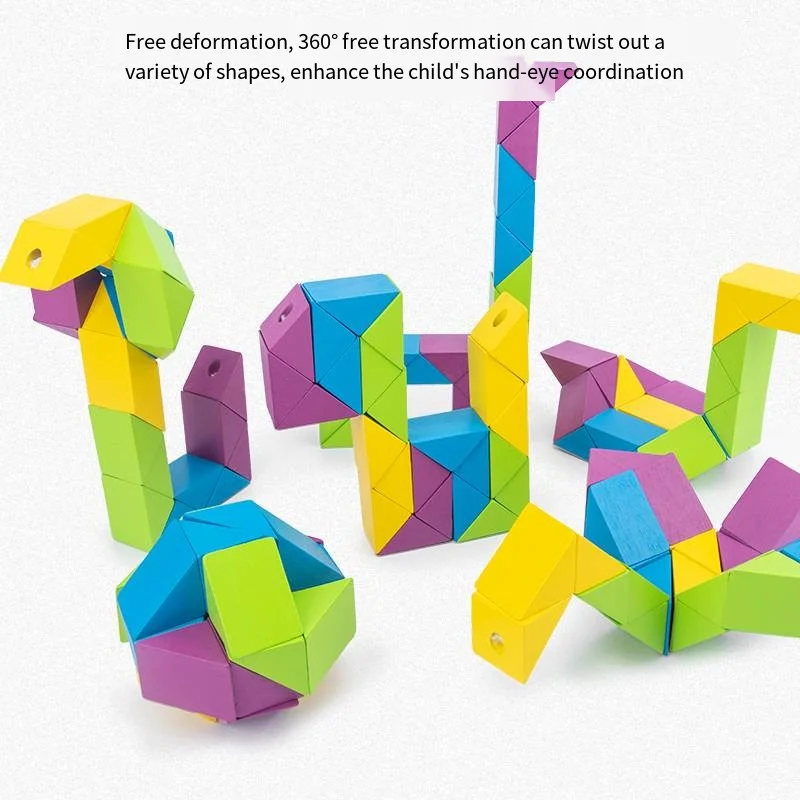 2026 Hot Selling New Building Block Puzzle Snake-shaped Magic Cube Children's Educational Toys High Quality Wooden Toys