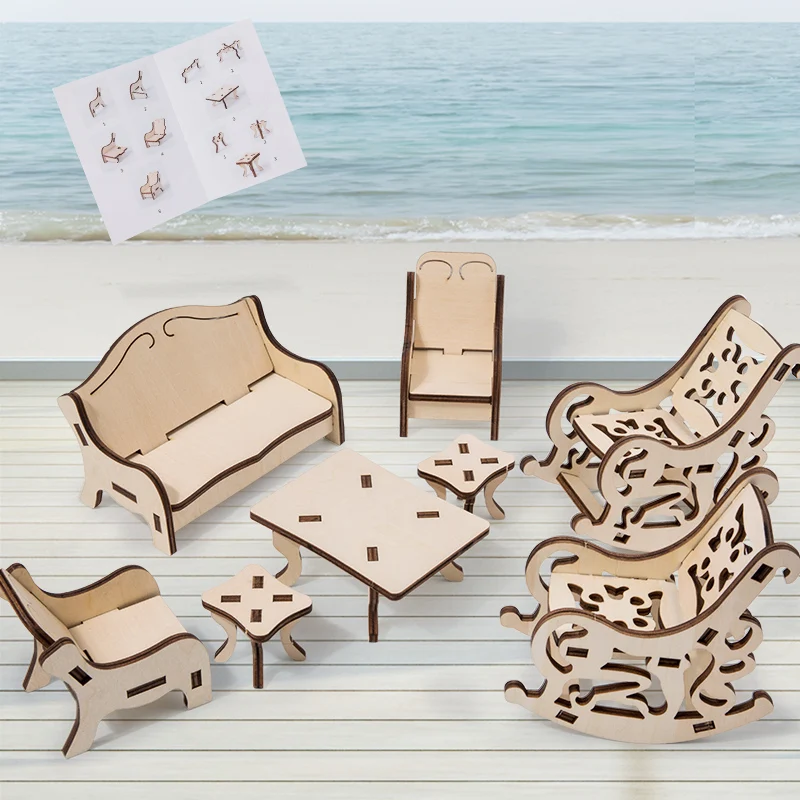 Multi-functional Popular DIY Table Chairs Dollhouse Miniature Furniture Mini Oak Dining Play Original Wood Color Special Offer
