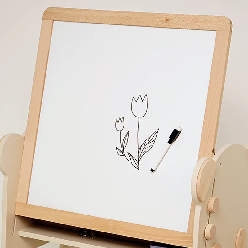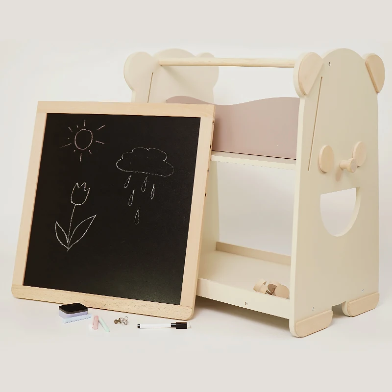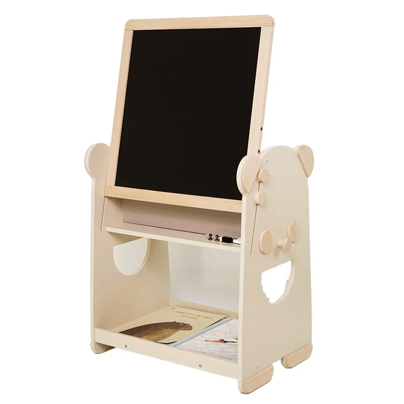 Multi-functional Cream Panda Blackboard Bookshelf Manufacturer Direct Sale Solid Wood Educational Toys for Kids Boys Girls