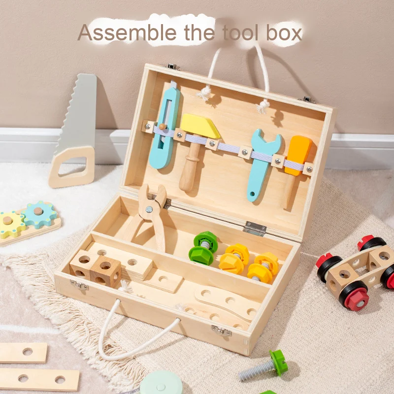 DIY Cartoon Multi-Functional Play House Wooden Kidsren's Satchel Tool Box Disassembly Assembly Nut Combination Educational Toy