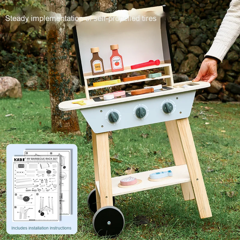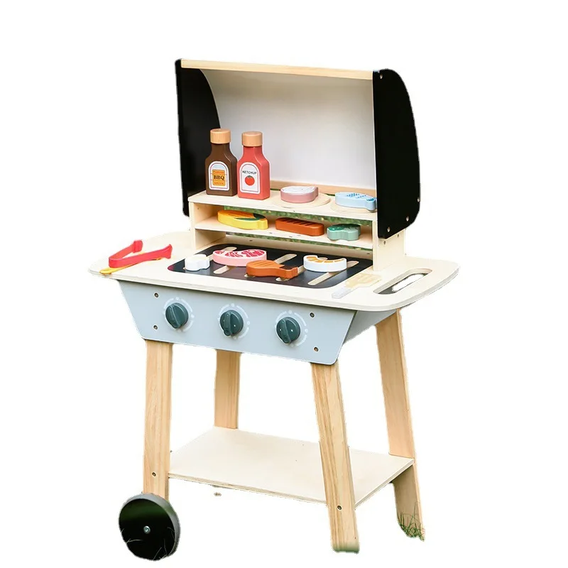 Scandinavian Style Baby Kitchen Set Wooden Barbecue Table Skewers Meat Cut Artificial Barbecue Grill Play House Boxed Kitchen