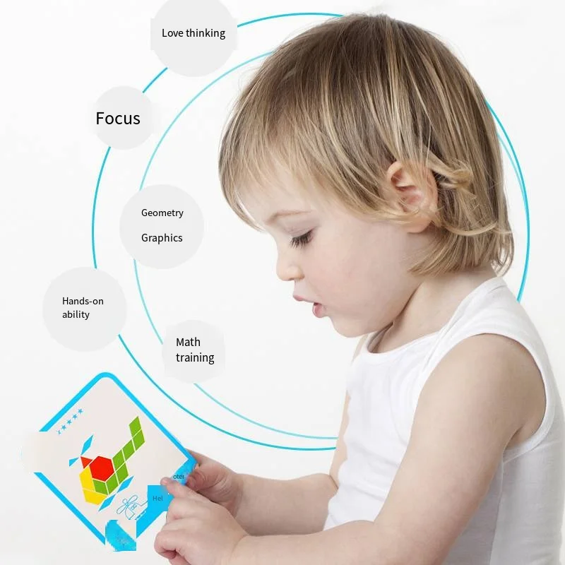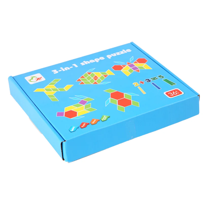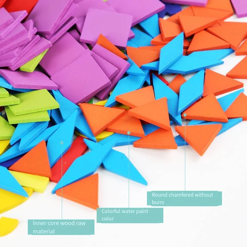 Wooden Toys 3-in-1 Shape Puzzle Wooden Pattern Blocks Set Montessori Tangram Toys Wooden Creative Geometric Shape Puzzle