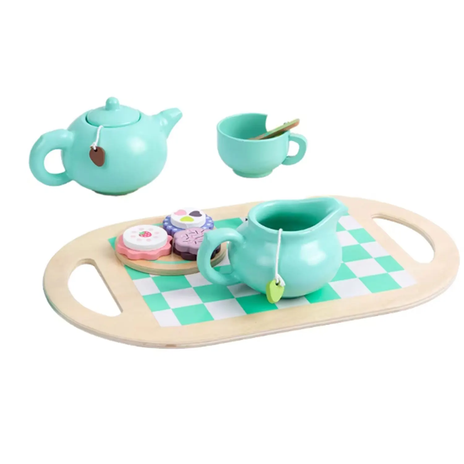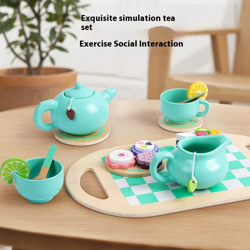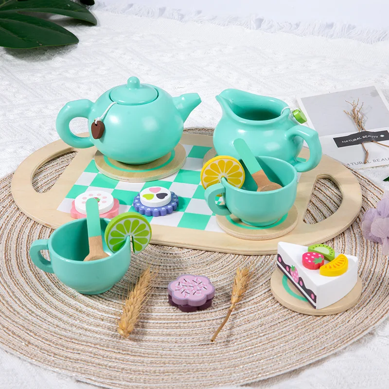 Best-selling Wooden Children Simulation Home Afternoon Tea Dessert Cake Sale Tea Pot Cup Tea Set Toys for Kids Boys & Girls