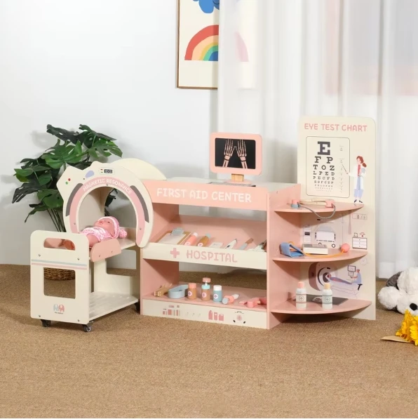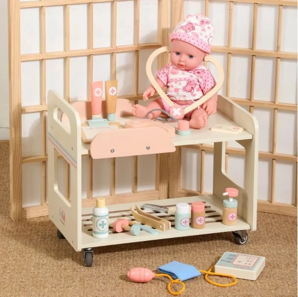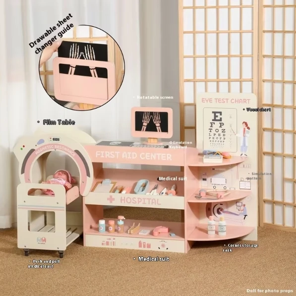 Best-selling Children's Pink Wooden Role Play Hospital Emergency Center Set Educational Pretend Doctor Toys for Kids Girls