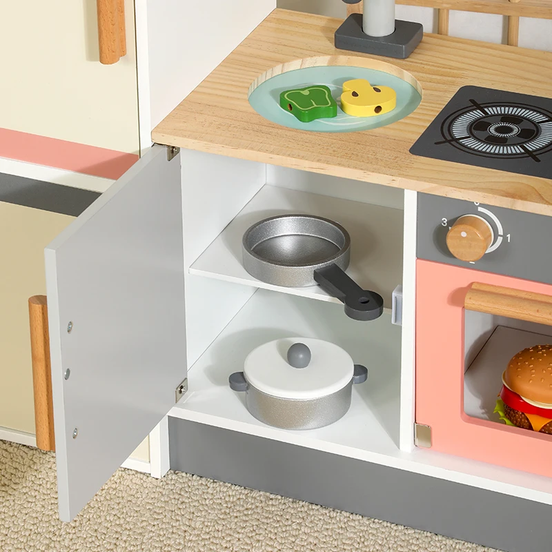 Professional Service Children's Split Grill Refrigerator Kitchen Juguetes Wooden Montessori Pretend Toys for Kids Boys Girls CE