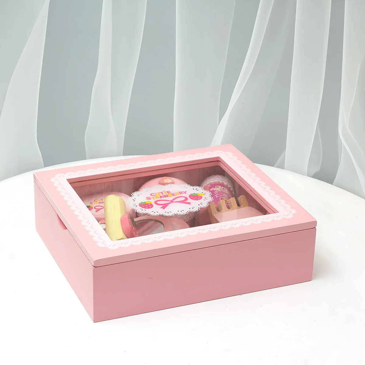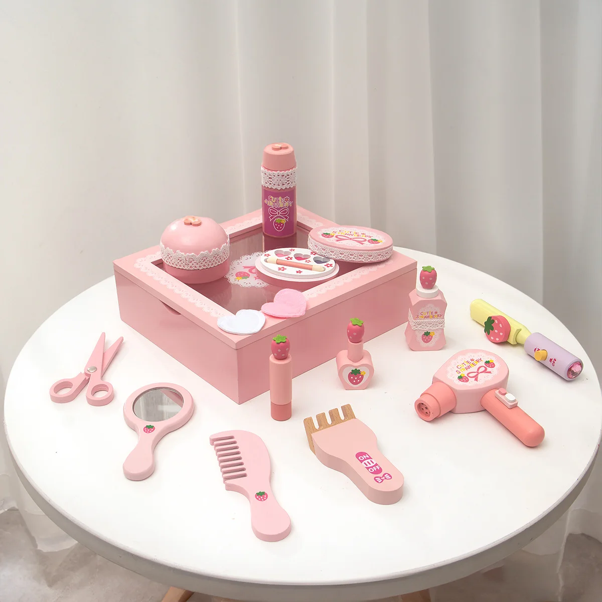 Montessori Wooden Simulation Cosmetic Mirror Beauty Salon Makeup Accessories Educational Learning Games for Kids Boys & Girls