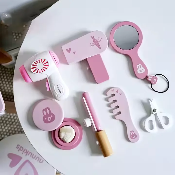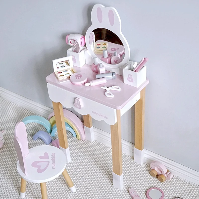 Multi-functional Simulation Cartoon Rabbit Dresser Princess Makeup Table Play House Wooden Educational Learning Games for Kids