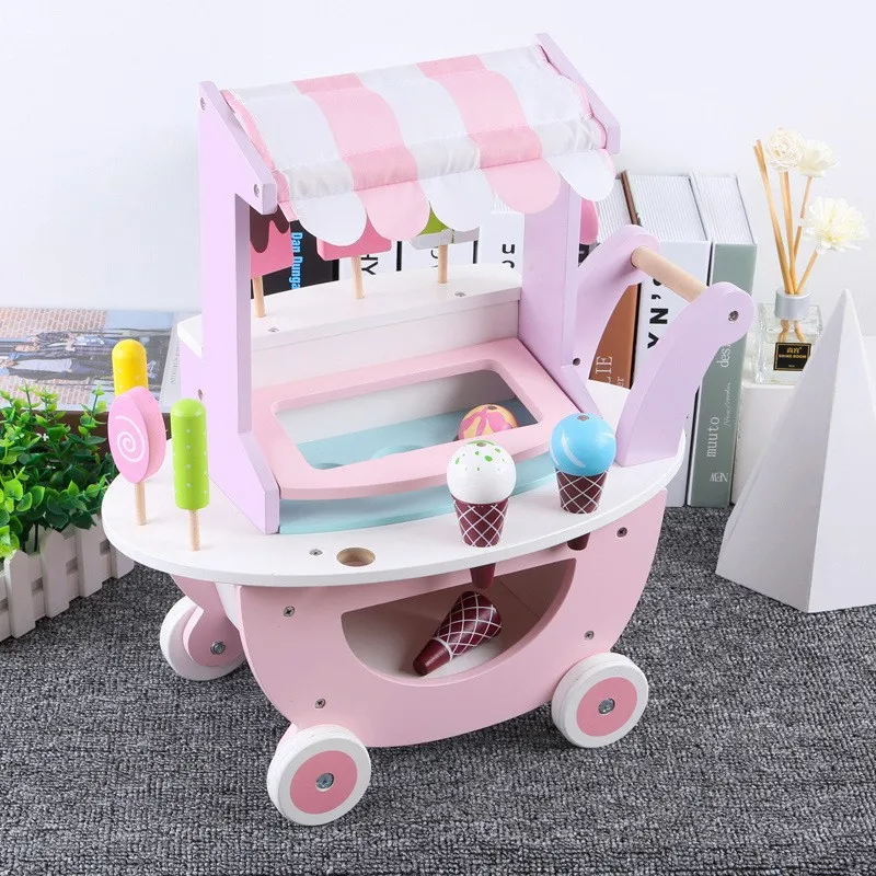 Special Design Children's Pink Ice Cream Trolley Juguetes Wooden Pretend Play Preschool Dessert Toys for Kids Boys Girls CE