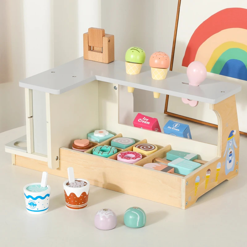 2026 Best-Selling Montessori Educational Kitchen & Food Toys Manufacturer Direct Sale New Arrivals Ice Cream Shop for Boys Girls