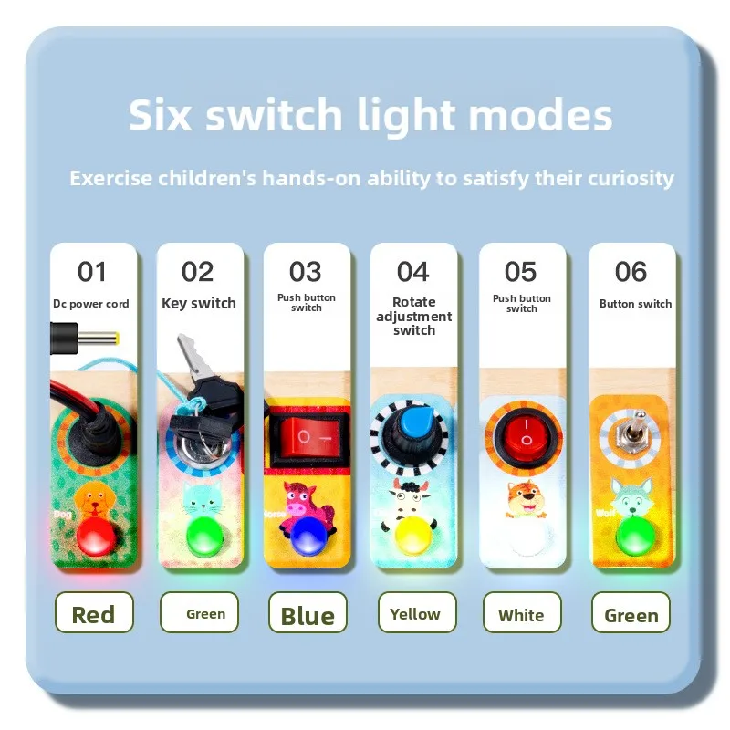 Montessori Wooden Busy Board with LED Light Switches Toddler Life Skills Toy for Early Learning and Cognitive Development